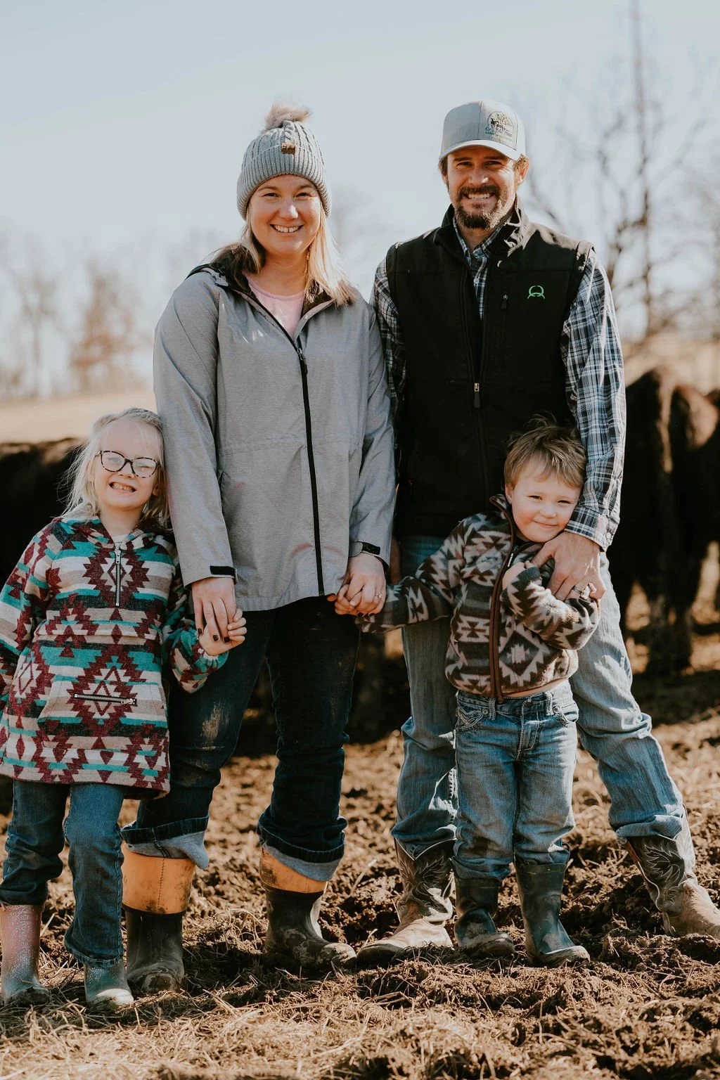 As our operation grew, so did our family. We now have two children who are just as passionate about agriculture as we are. Our daughter Laekyn is the goat whisperer—always cuddling babies, leading show strings, and running the barn like a tiny CEO. Our son Bransen was born to farm. Whether he’s riding in the tractor with Brad, climbing the equipment like it's a jungle gym, or out mingling with cows and goats, he’s happiest when he's got a job to do and dirt on his boots.